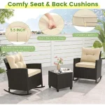 - Perfect Retreat for Relaxation: With its attractive design and cozy seating, this rocking chair set is the ideal choice for your garden, poolside, or porch. Rocking chair dimensions: 31.5” x 26” x 31.5” (L x W x H). Coffee table dimensions: 18” x 18” x 18” (L x W x H).