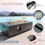 - 3-IN-1 VERSATILITY: Designed for flexibility, this fire pit supports both propane and natural gas; Enjoy it three ways—ignite the fire for warmth, add the glass wind guard for a steady flame, or place the sleek lid to transform it into a spacious coffee or dining table; The lid’s built-in pull ring ensures easy handling, while integrated hand slots on both sides allow for effortless lifting and repositioning