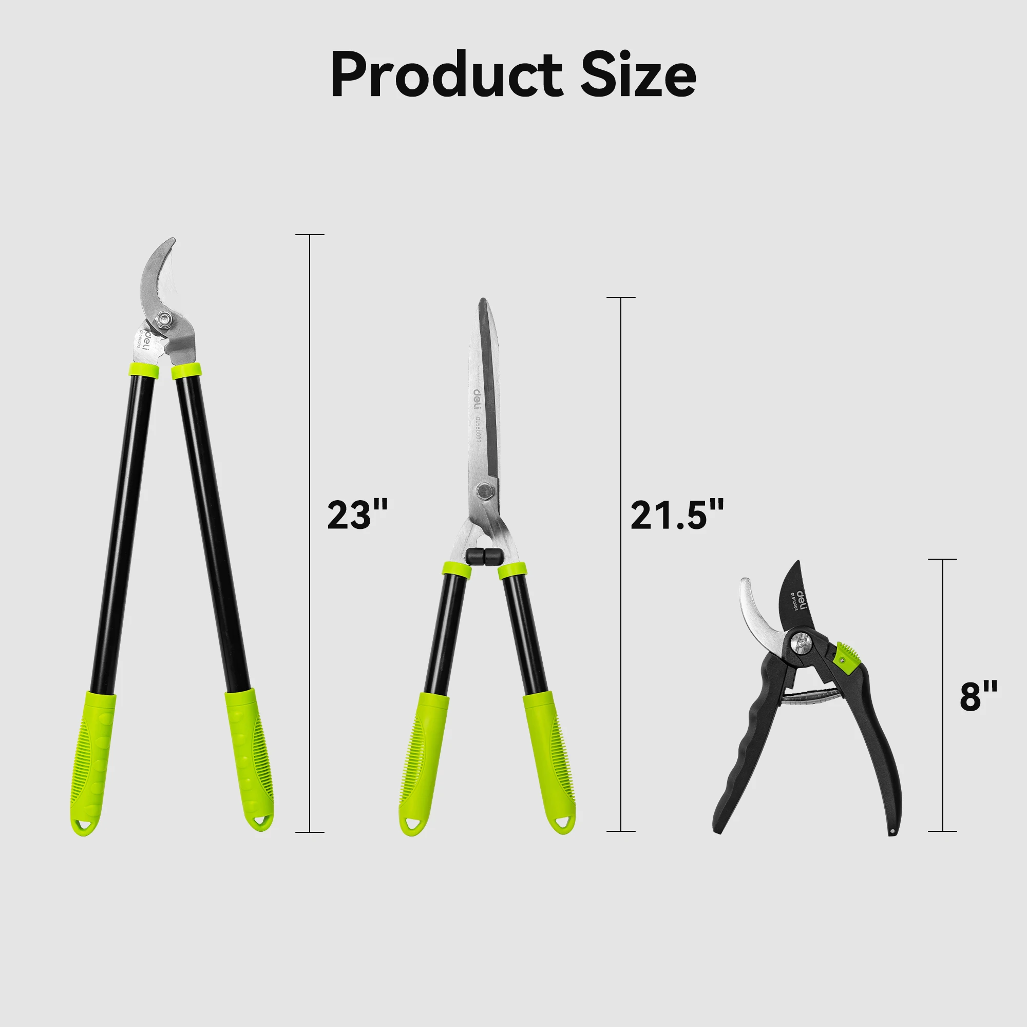 Deli 3-Piece Loppers, Hedge Clippers & Pruners Set, Heavy-Duty Garden Tools for Tree & Shrub Care, Branch Cutter & Tree Trimmer