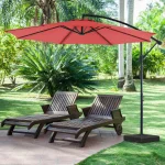 Premium Canopy Material: Made with high- quality polyester fabric, the cantilever umbrella provides UPF50+sun protection and resists fading over time. Please store the offset umbrella indoors during extreme weather conditions for longevity.
