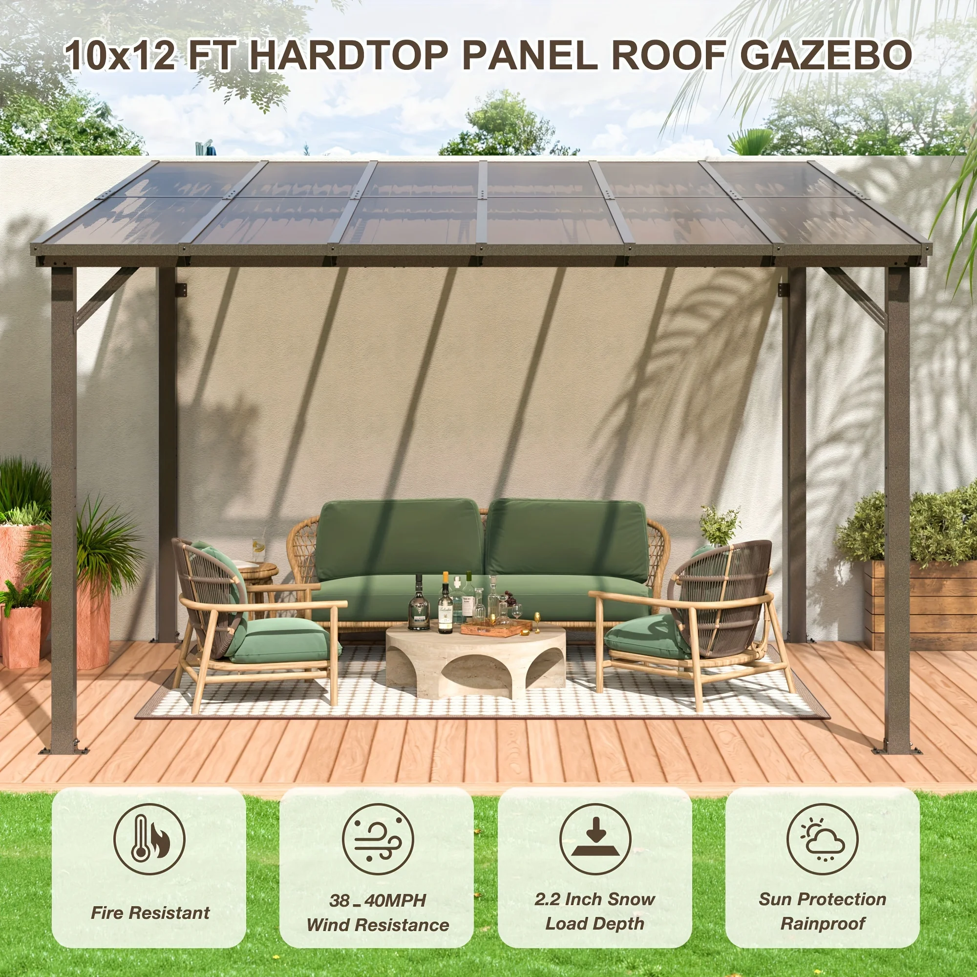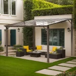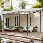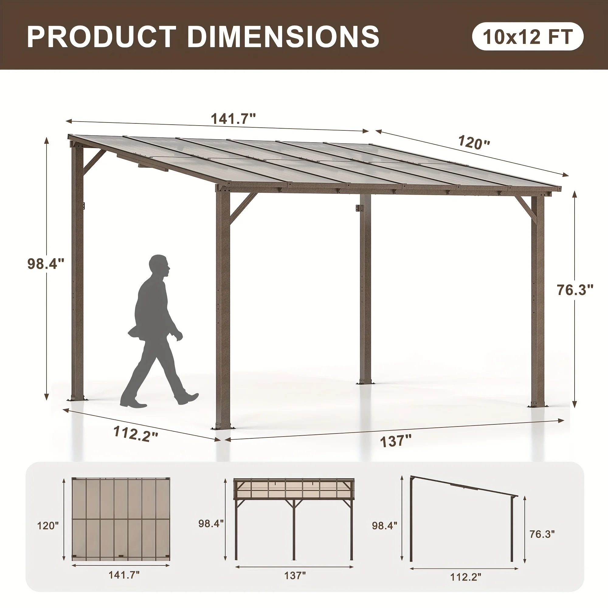 Selected Materials: Polar Aurora wall-mounted pergola adopts 6mm thickened PC hollow panel, which insulates 99% of UV rays while ensuring sufficient light. Outdoor gazebo roof panels are supported by crossed aluminum tubes.